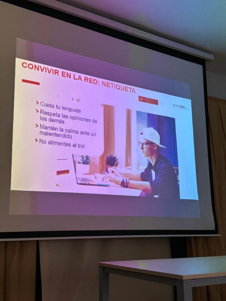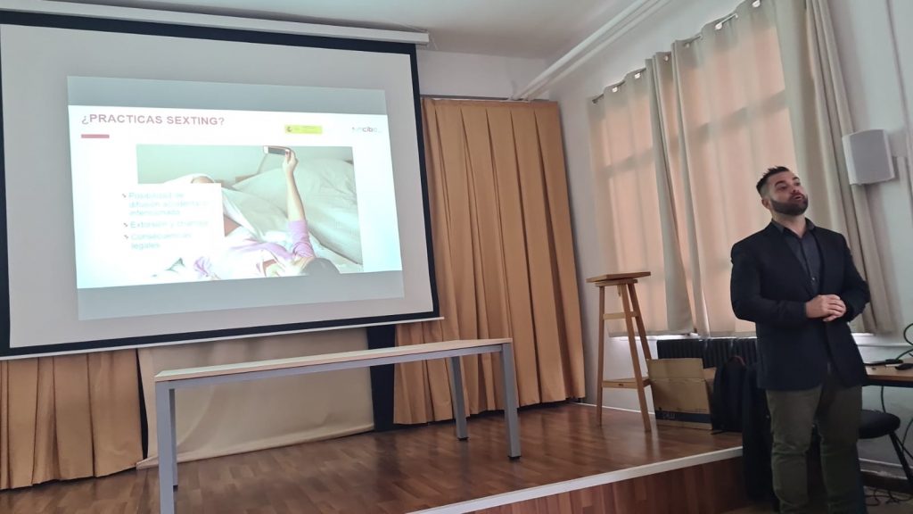 Además, aprovechando su visita, realizó una charla a nuestro alumnado de la ESO sobre los peligros que hay en internet y concienciar de un uso responsable y correcto.
