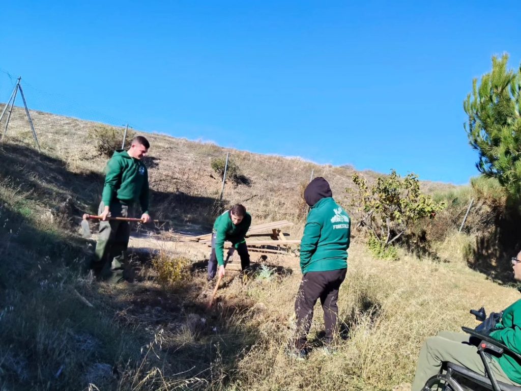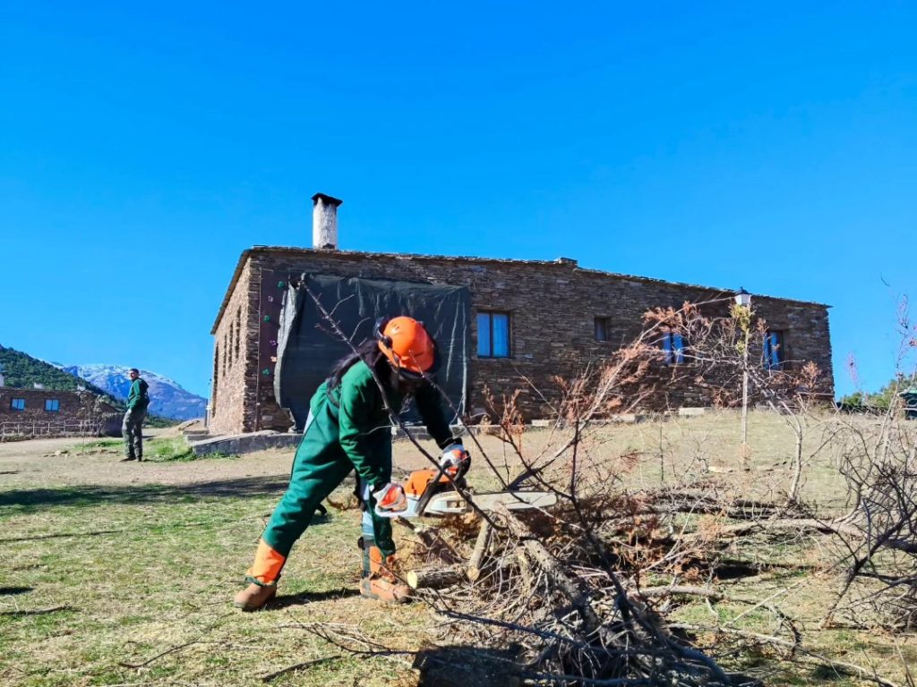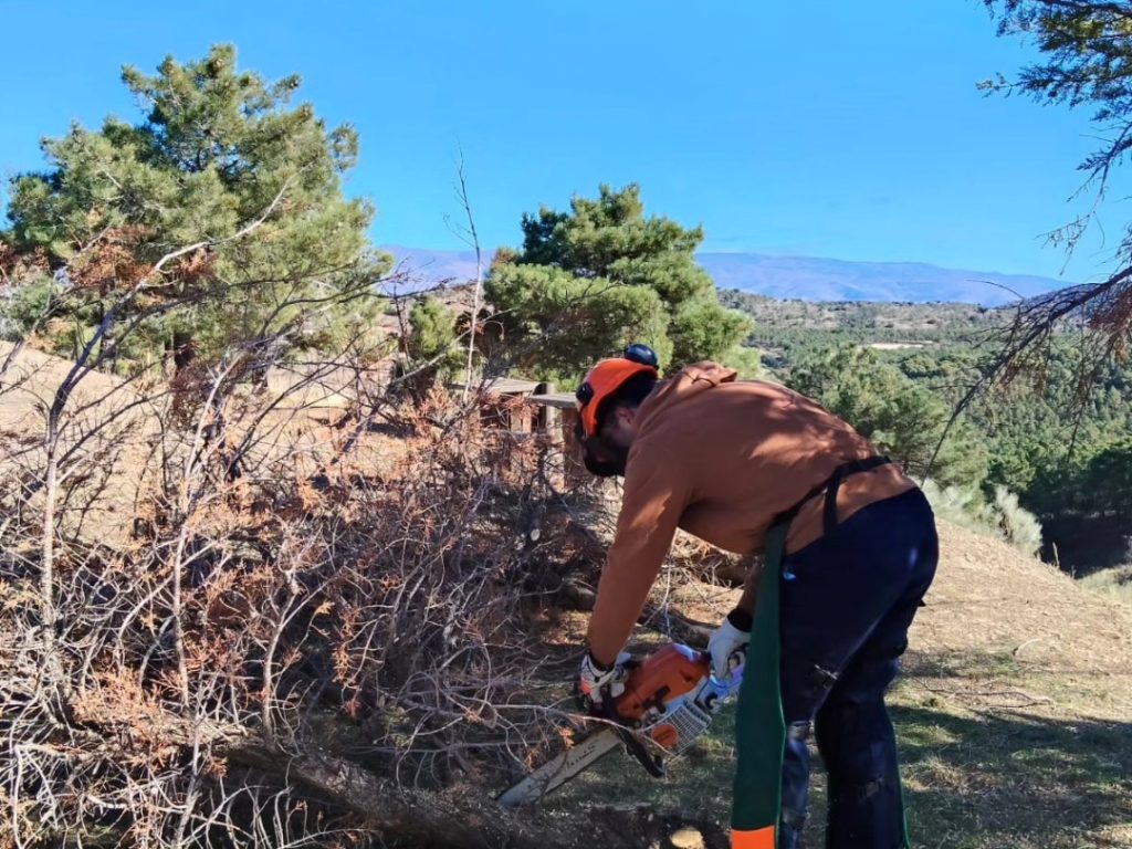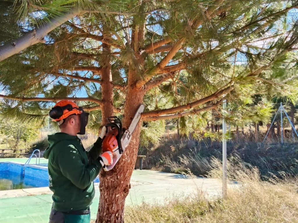 Se han realizado podas de formación, fructificación y de saneamiento de los árboles de este maravilloso entorno, además de apeo de árboles enfermos o secos, tronzado, apilado de madera, realización y arreglo de alcorques.