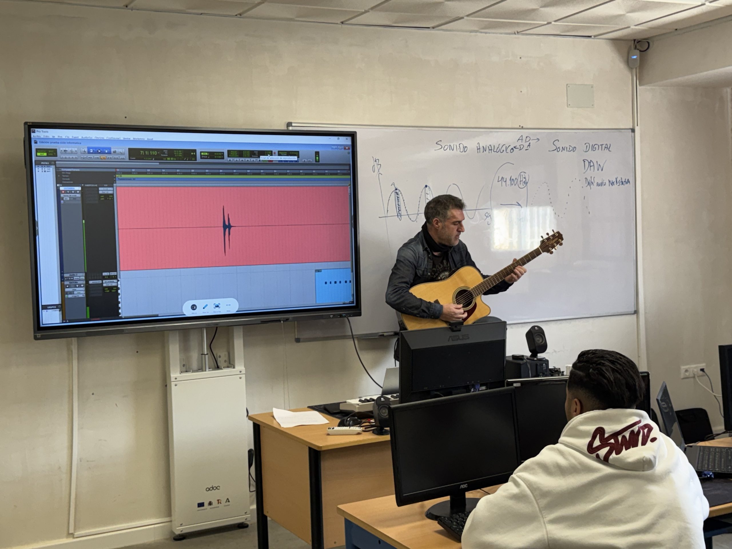 Hoy el profesor de Música, David, visitó el aula del ciclo de Informática para hablarnos de tarjetas de sonido, sus ...