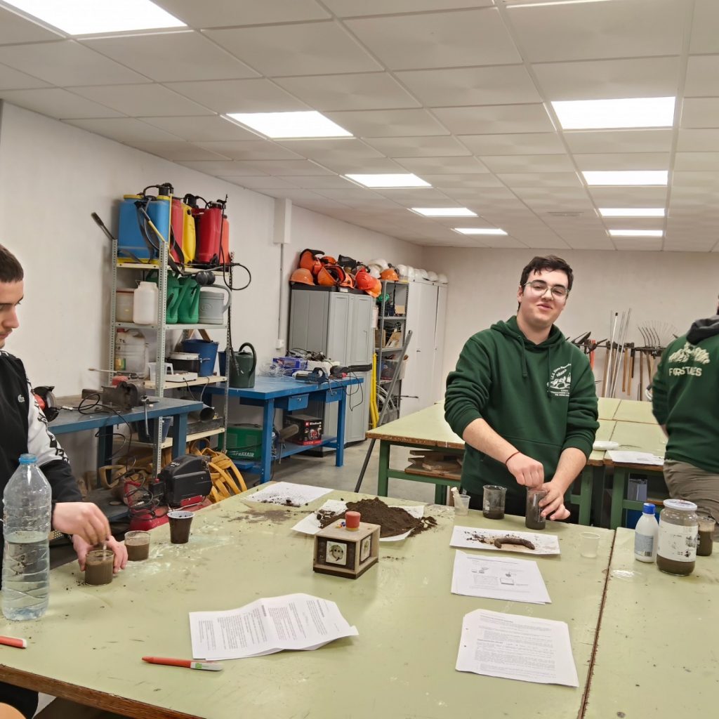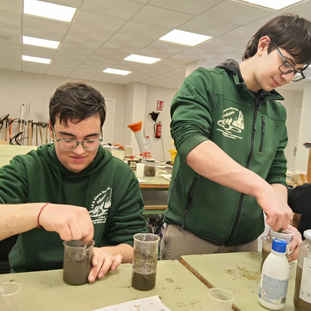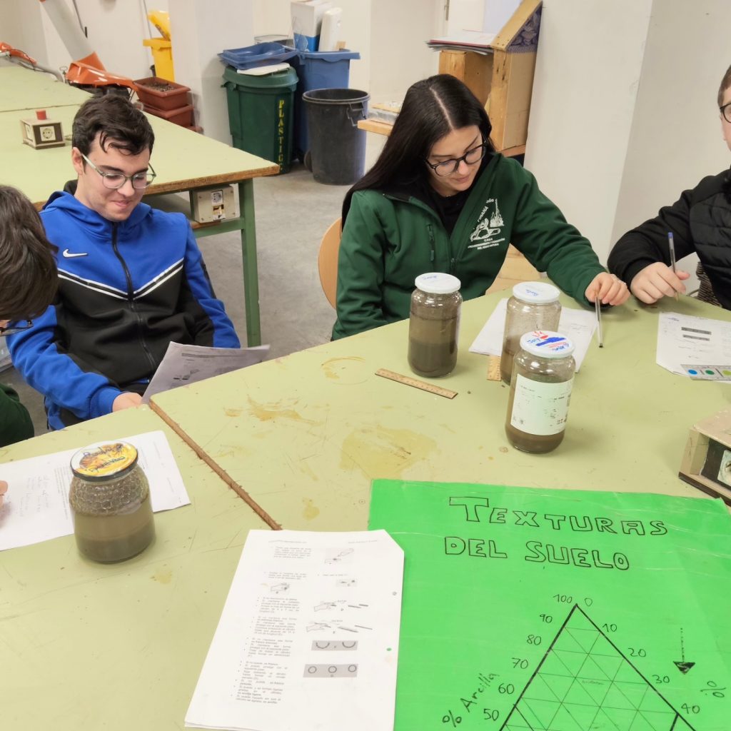 Práctica de análisis de suelos dentro del módulo Fundamentos Agronómicos. El alumnado de 1º de Aprovechamiento y Conservación del Medio Natural ( Forestal), pudo averiguar las características de sus muestras de suelo, realizando un análisis sencillo, en el que se midieron entre otros parámetros, textura, contenido en materia orgánica, presencia de carbonatos, pH, conductividad eléctrica.