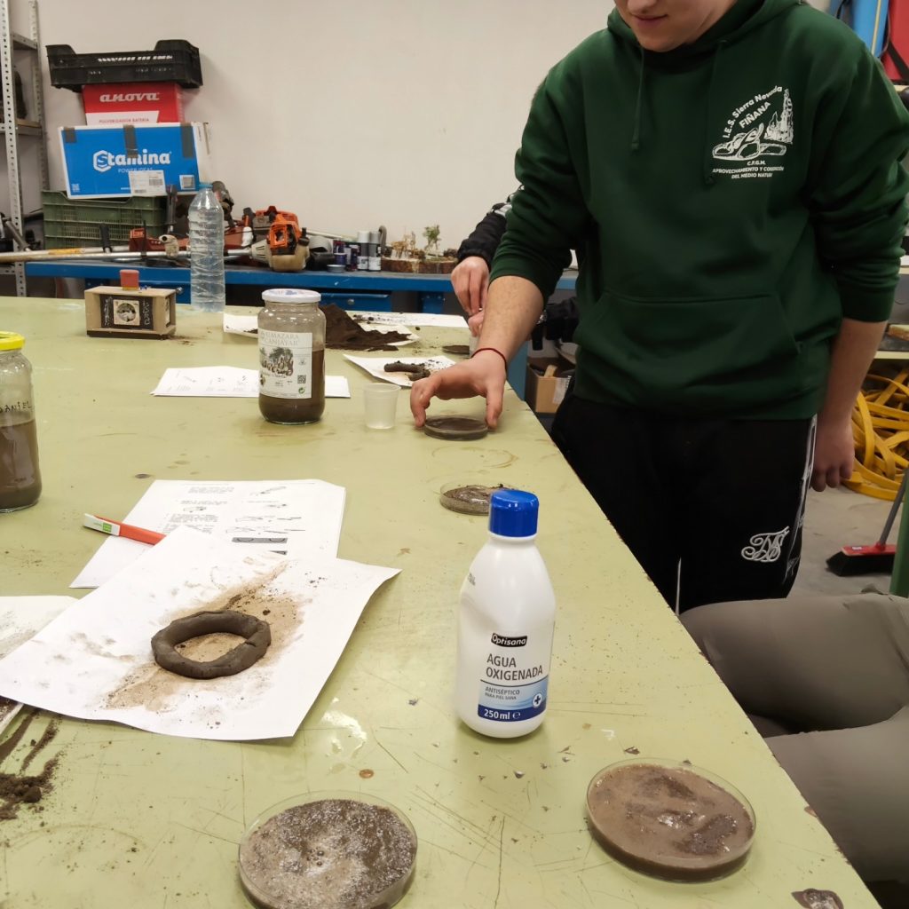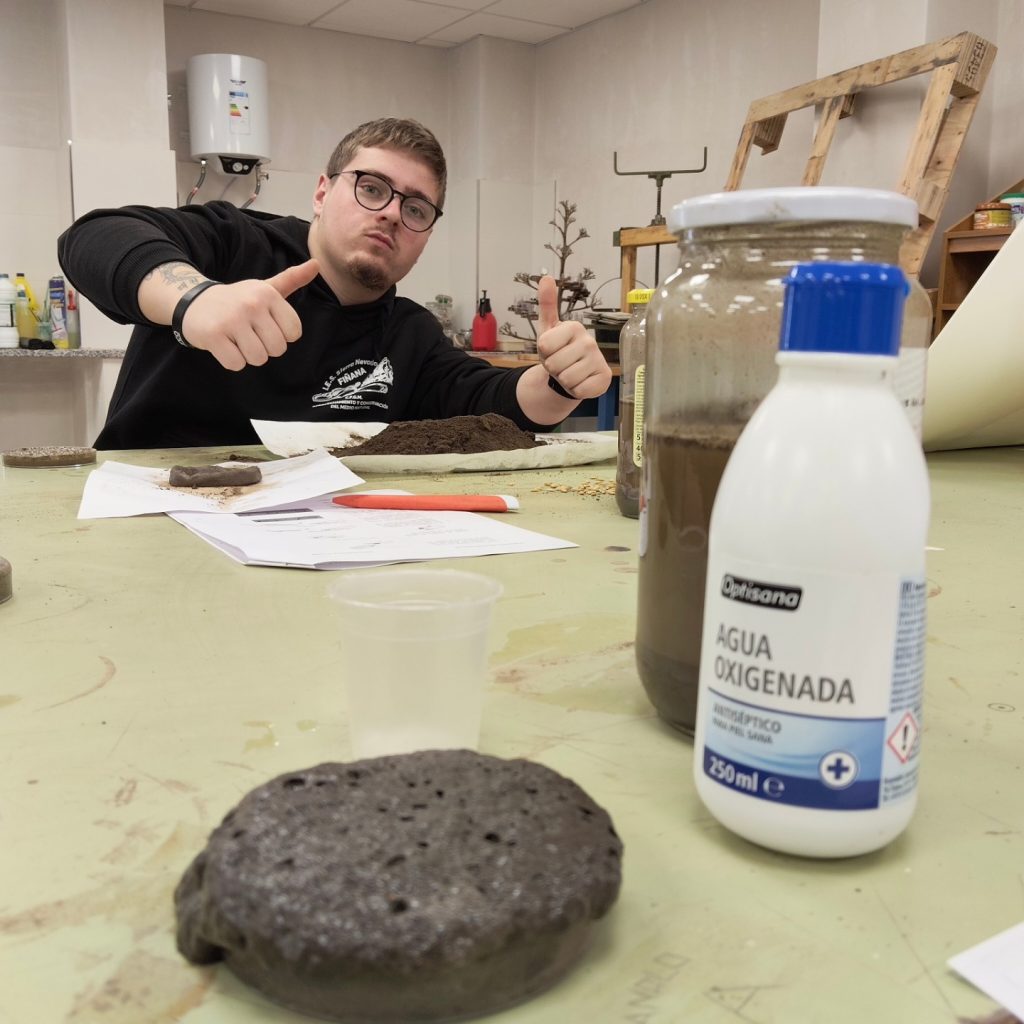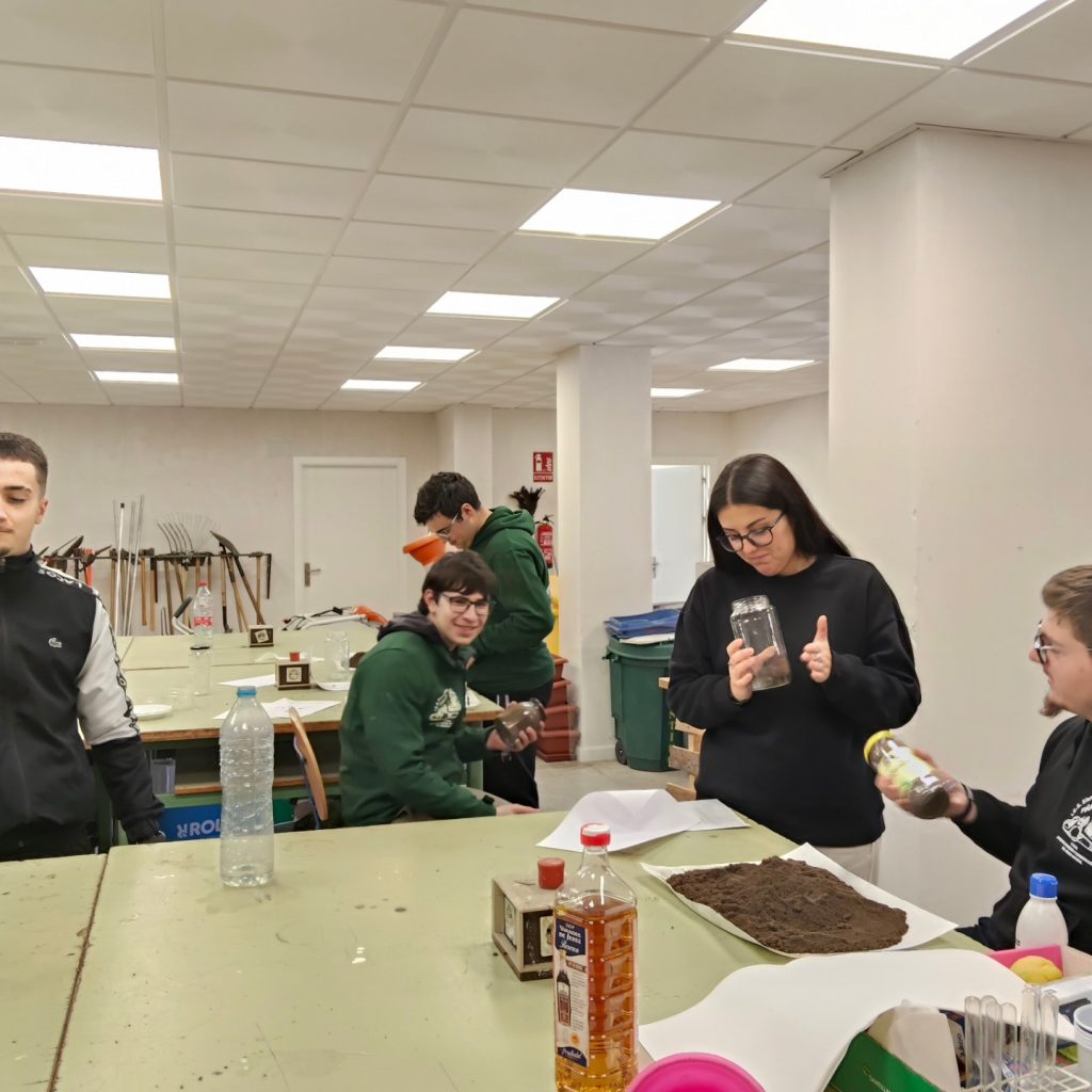 Práctica de análisis de suelos dentro del módulo Fundamentos Agronómicos. El alumnado de 1º de Aprovechamiento y Conservación del Medio Natural ( Forestal), pudo averiguar las características de sus muestras de suelo, realizando un análisis sencillo, en el que se midieron entre otros parámetros, textura, contenido en materia orgánica, presencia de carbonatos, pH, conductividad eléctrica.